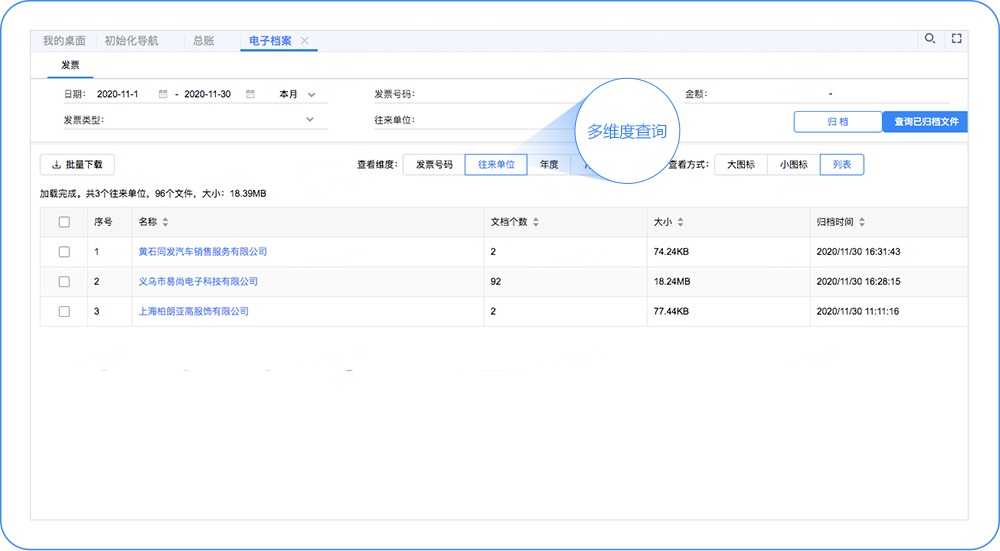 • 支持发票源文件电子归档,符合档案管理合规性要求。