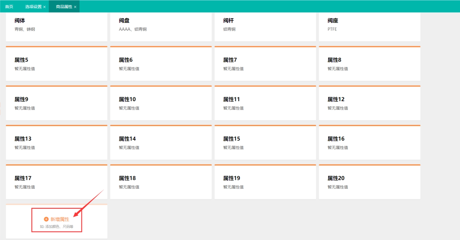 系统管理-选项设置-库存设置,启用商品属性设置,在基础信息中可以维护多种商品属性。