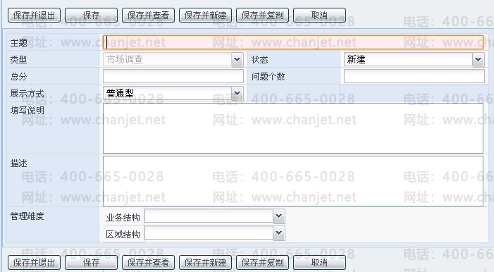  [保存并新建]:保存当前调查问卷信息,并打开调查问卷的新建页面。