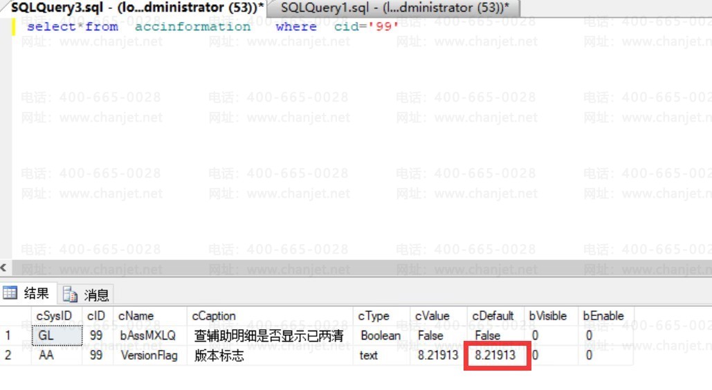 在数据库里面执行下面语句,通过对比这个记录,与方法三一样,对比上面图片判断软件版本