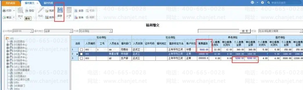 1、【福利业务】-【福利缴交】,选择对应的会计期间、福利地区和福利方案,系统自动带出福利档案里的缴费基数和缴费比例