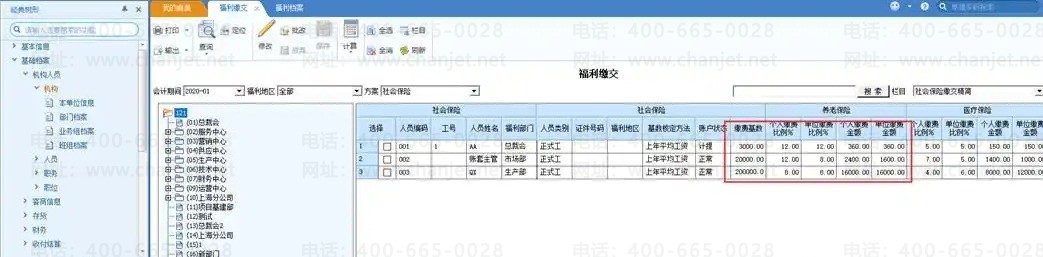 系统根据【基础设置】-【福利方案设置】里的计算公式设置,计算缴费金额