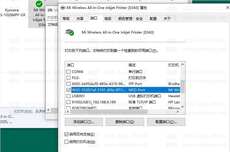 2、添加好之后要把当前打印机的端口配置为TCP/IP端口,如下图所示