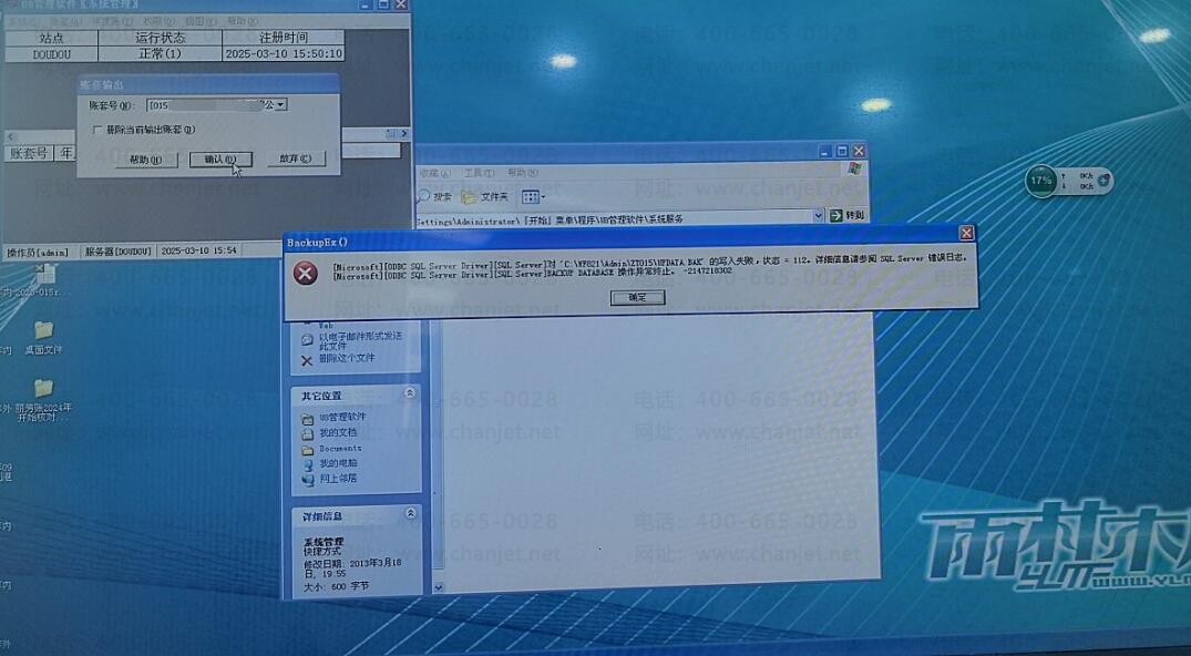 用友U821在备份账套的时候出错,问具体咋决绝,错误如下