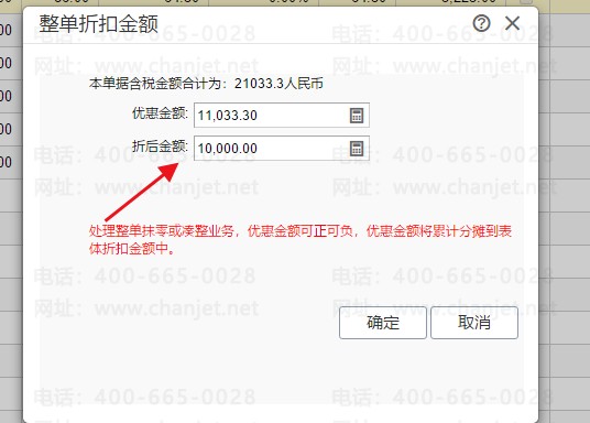 点击整单折扣输入要折扣的金额后我们就可以看到单据的总金额会直接减掉折扣金额.