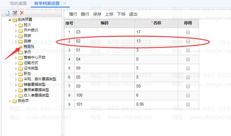畅捷通T+预设的税率是在【系统管理】——【枚举档案设置】中增加修改的.