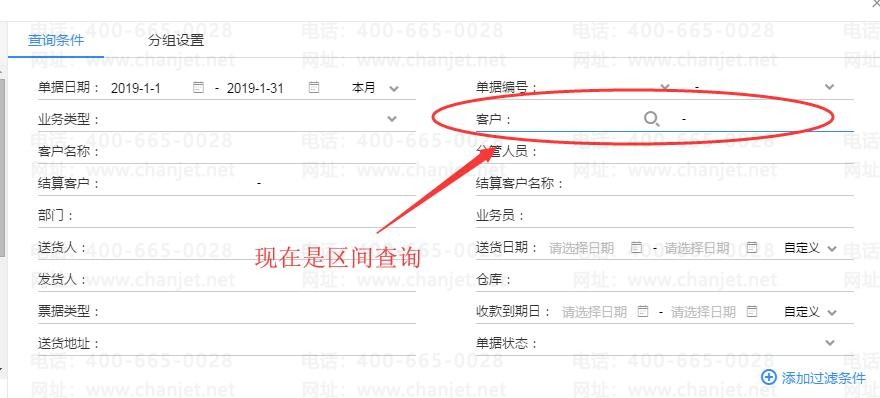 畅捷通T+,在使用明细账或统计表时,查询选项中,某些条件可以修改查询条件的,比如客户这一明细。可以设置单选,多选和区间选择。方便客户在查询时使用多种方式产看业务明细。