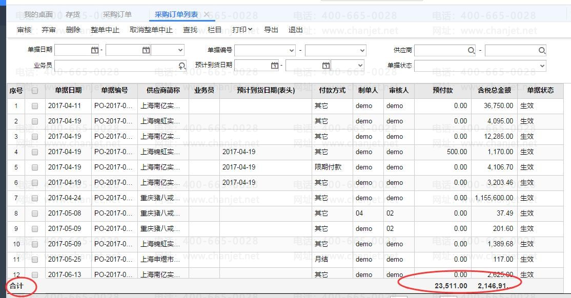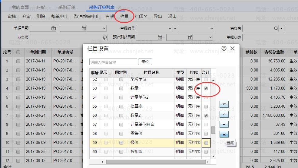 畅捷通T+查询订单时,怎么可以看见总的合计金额和数量,同时合计为何不显示。