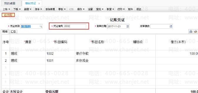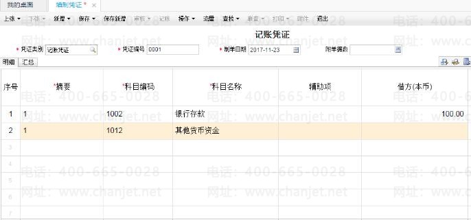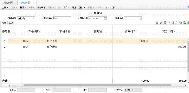 【问题现象】该账套中11月的0001号凭证如下,想在0001号凭证前再插入一张凭证应如何操作?