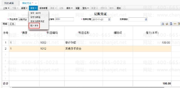注意:T+插入凭证必须是您这个凭证填写完毕之后才可以点插入保存