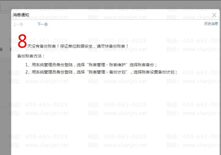 T+软件在登录是会提示您有多久没有备份了,这个是T+的一个预警功能。提示您账套有多久没有进行过备份或者距离上次备份有多久了。
