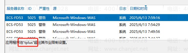 不管白天晚上一直有报iis错误,T+的应用程序池资源不够。是不是访问太多了,5分钟一次警告 这个可能是哪里有问题?