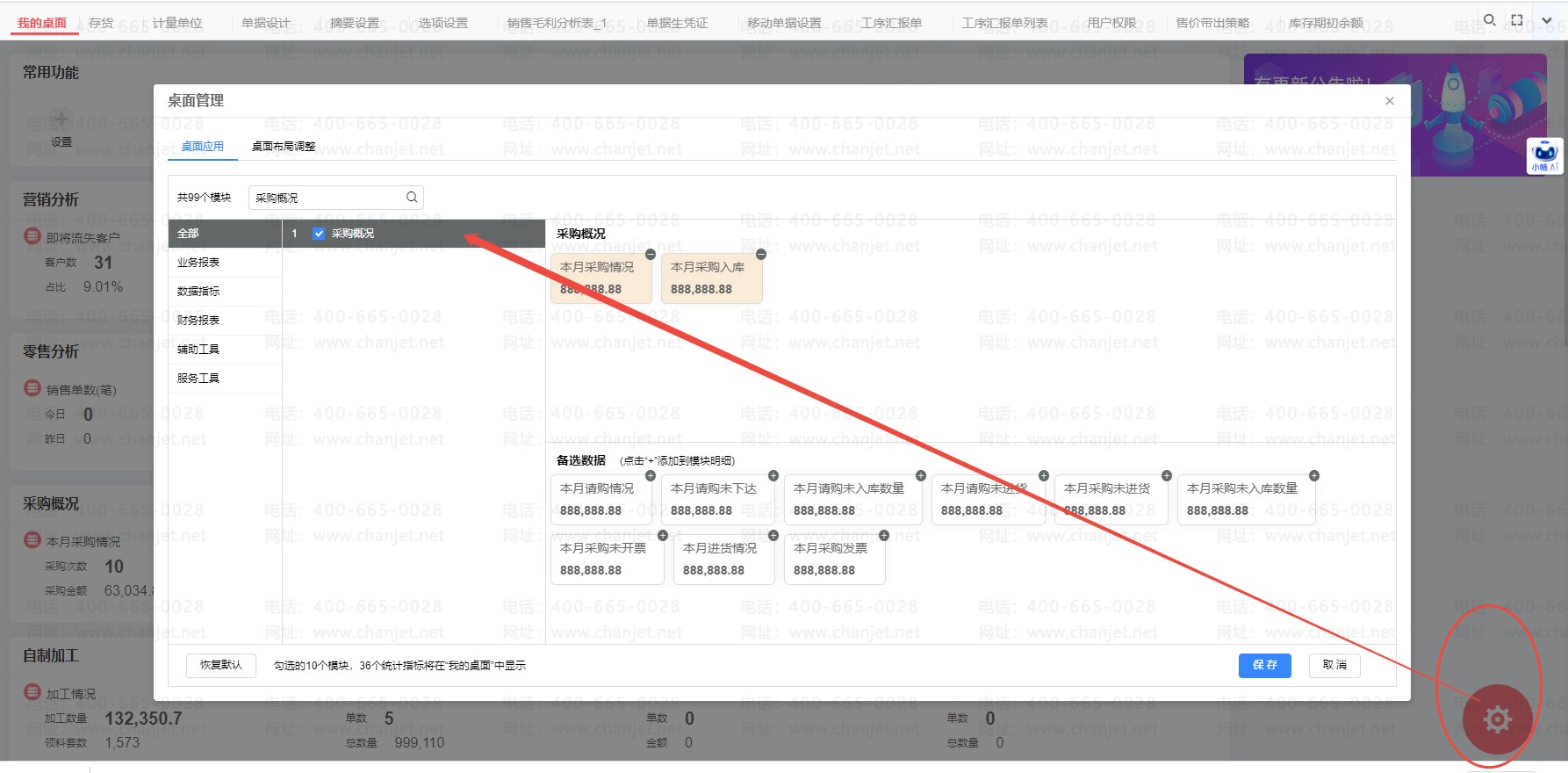 点击我的桌面,桌面管理,桌面应用,采购概况