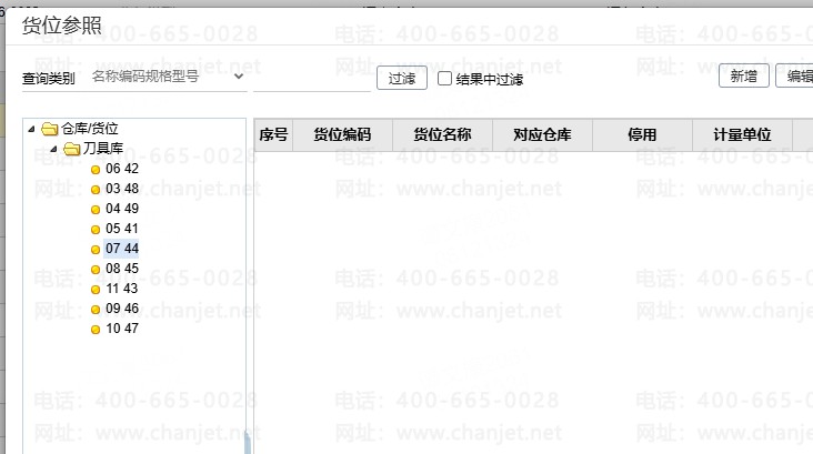 货位参照界面左下角取消勾选现存量大于0可用量大于0