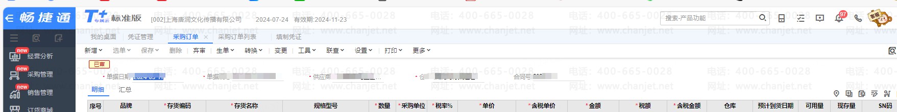 用友T+两个账套采购里折扣列不一样,一个账套有折扣列却不能自动计算,一个为什么没有折扣列