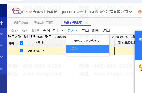 用友T+银行对账单 导入按钮 变成灰色