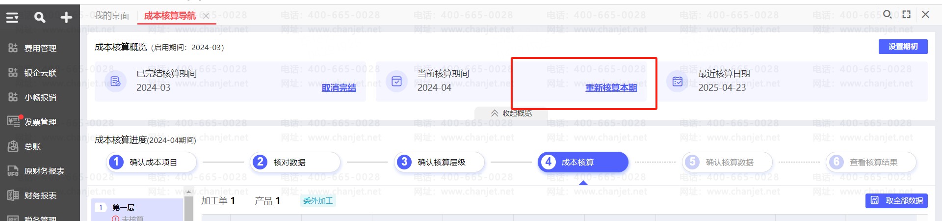 为什么成本核算模块,无法执行重新核算本期的成本,点击后无反应。如何对已经核算的期间重新核算成本?