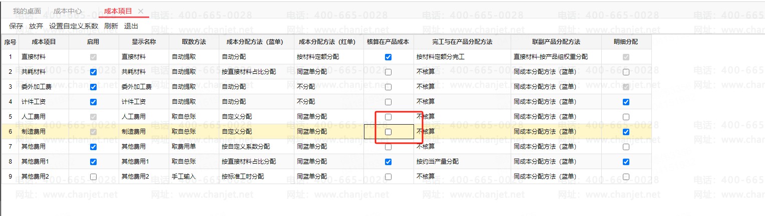 基础设置-成本项目中进行调整