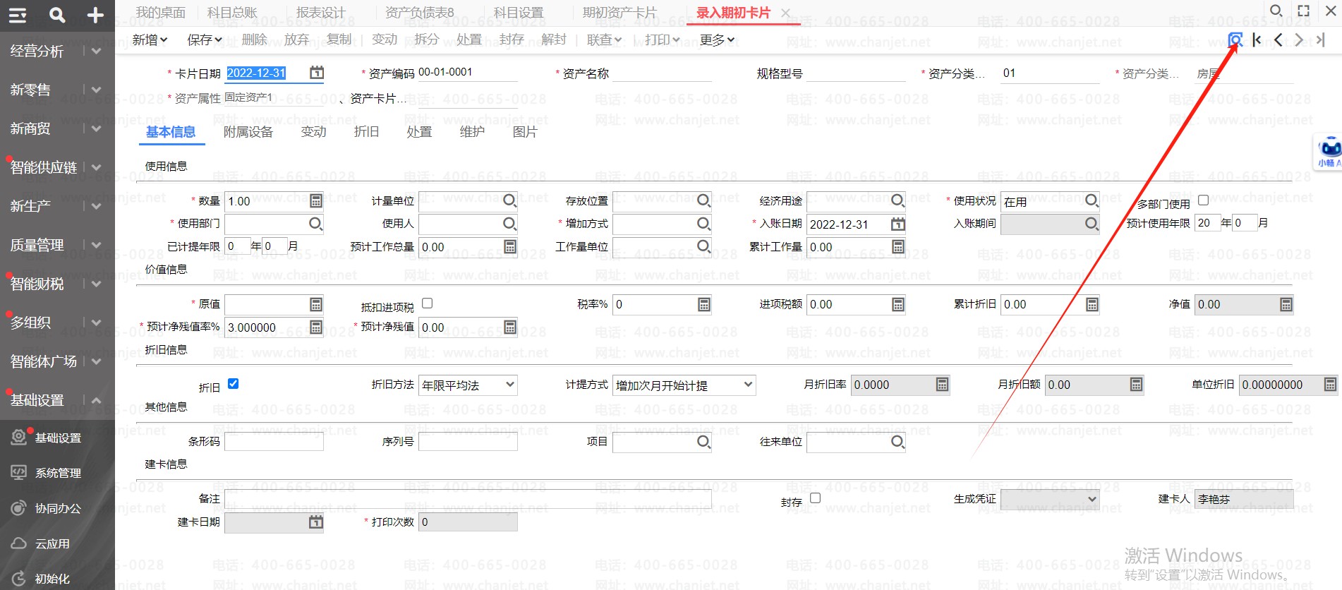 在初始化--录入期初卡片页面点击右上角放大镜查询即可