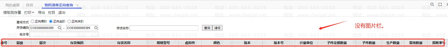 请问,我们的物料清单是有附带图片的,但为什么导出时没有这一栏呢,请问目前还有那些导出物料清单全阶的方式呢,具体操作步骤是如何。