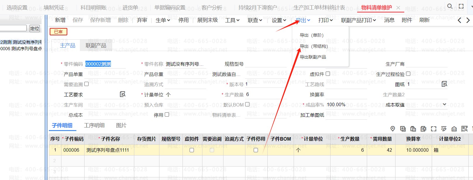 图片需要单独导出下,另外需要导出物料清单的全阶,可以在物料清单维护页面点击导出(带结构)进行导出