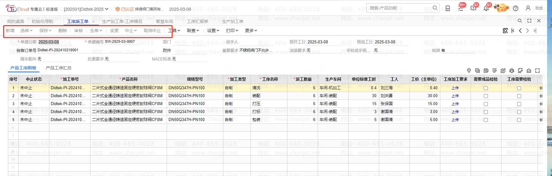 工序派工单界面的新增、保存、选单、删除、审核、生单、变更、中止、取消中止按钮全都是灰色的,其他按钮功能正常。