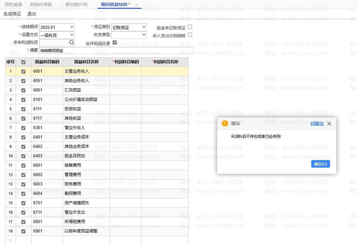 用友T+利润科目不存在或者已经停用!