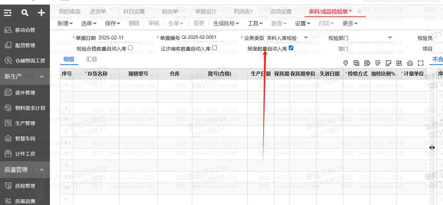 可以启用质检,在质量管理--质检管理--来料/成本检验单中勾选报废数量自动入库