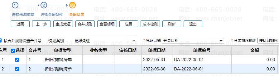 用友T+计提折旧,以前年度的业务单据为0,怎样合并生成凭证消掉