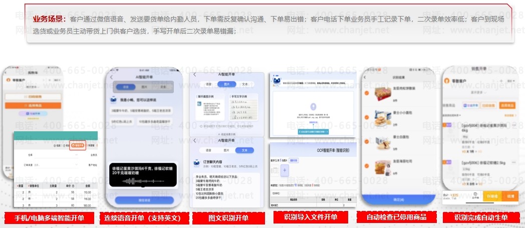 AI智能识别开单 语音、图片、文本智能识别、自动开单: