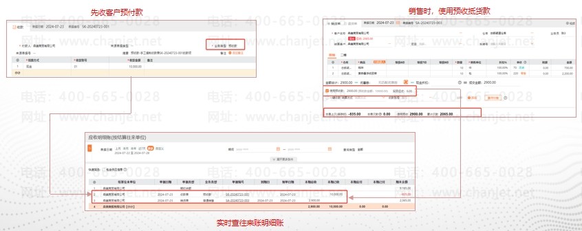 先款后货场景,先收取客户全额或者部分货款,没有发货,后期客户购买商品时直接抵用,用商品来偿还抵消预收;