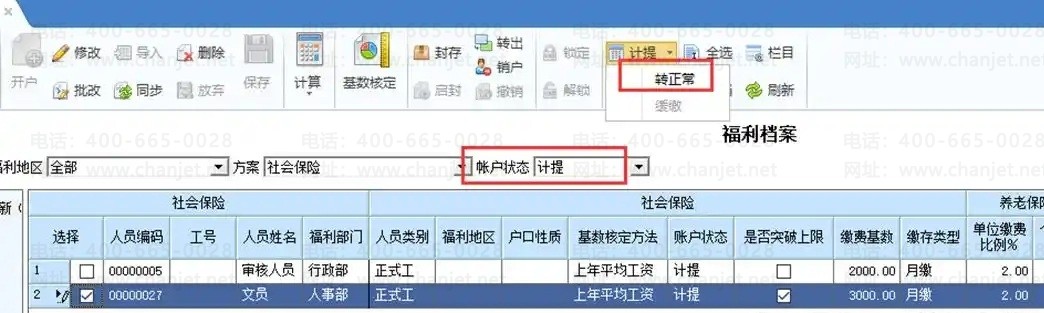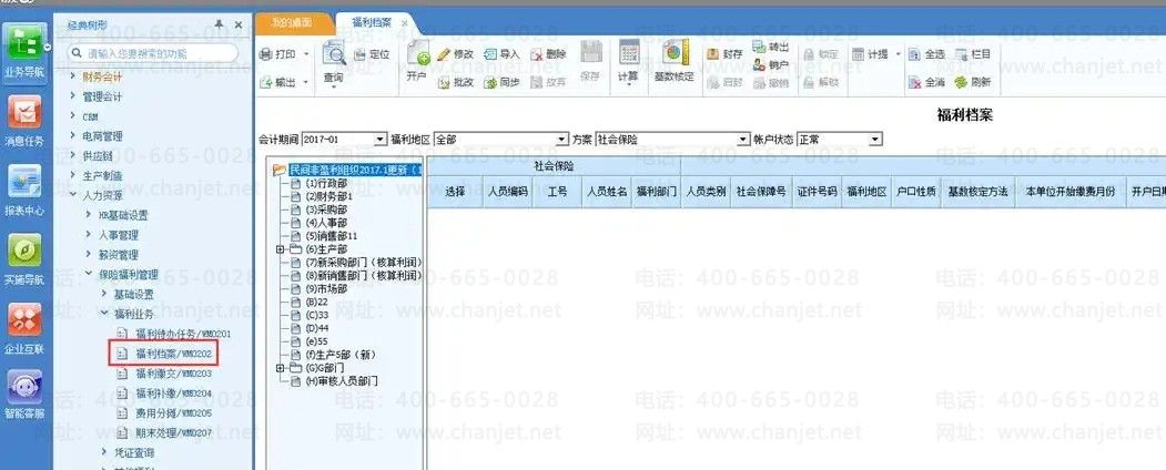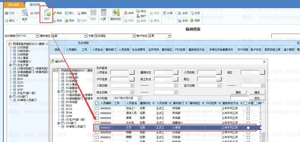 2. 企业人员需要缴纳保险,首先需要开户。注意:人员档案中需要审核,才能进行福利档案开户。