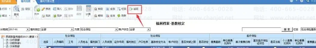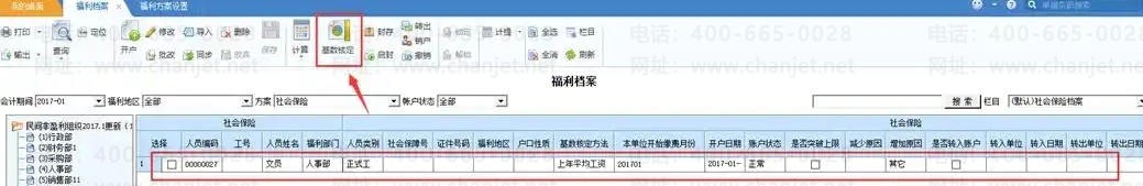 3. 开户后,可以点击基数核定,根据福利方案中的“基数核定方法设置”,计算出缴费基数。