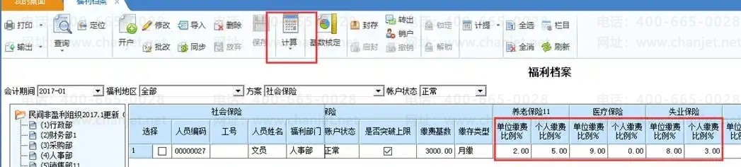 5. 点击计算,根据福利方案设置中的“比例公式设置”,计算出缴费比例。