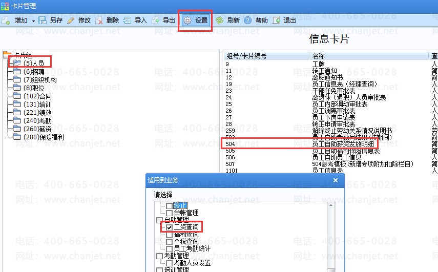 3、 选中对应卡片点击修改,修改后到员工自助中查询信息