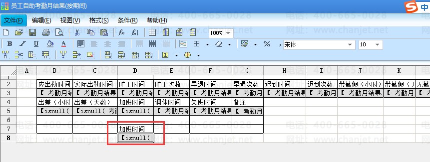 • 考勤统计——503卡片员工自助考勤月结果(按期间)