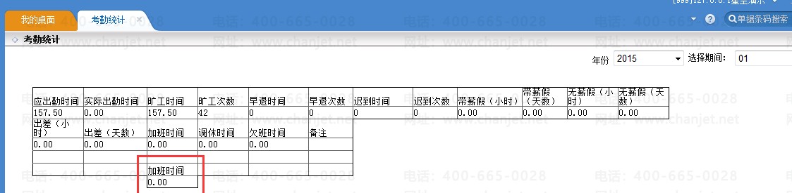 二、考勤统计——503卡片员工自助考勤月结果(按期间)