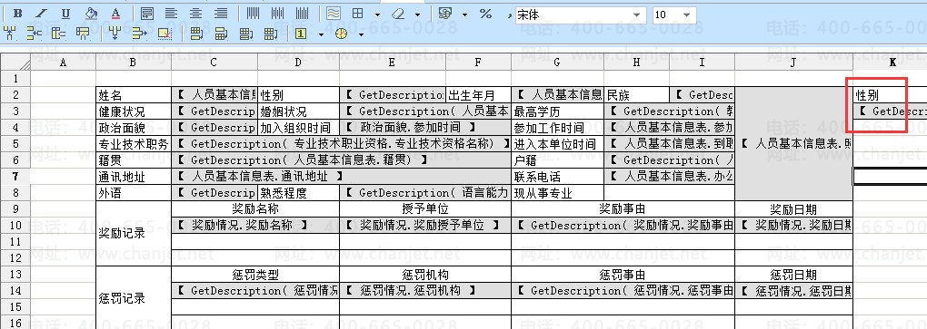表达式: 人员基本信息表.姓名 或者 GetDescription( 政治面貌.政治面貌)