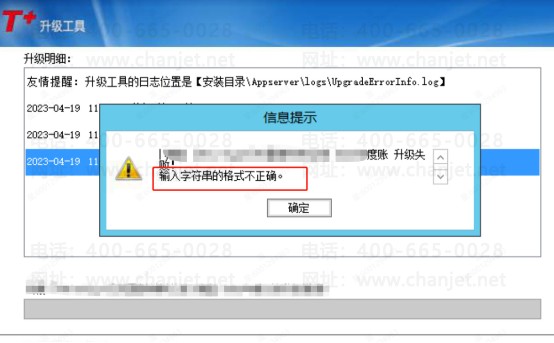 好会计软件升级T+不管升级哪个版本都提示输入字符串的格式不正确,以及图2中的报错