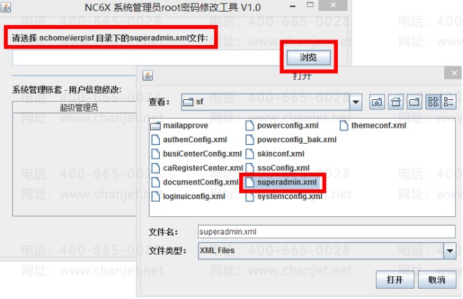 2.根据提示,选择nchome\ierp\sf\superadmin.xml文件,如图: