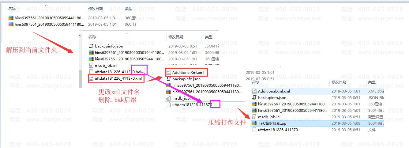二、将文件解压,更改xml文件,改成AdditionalXml.xml,删除.bak后缀,将两个文件压缩打包.zip。