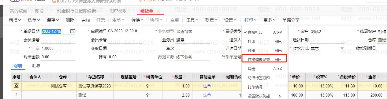 步骤一:进入单据打印模版设置